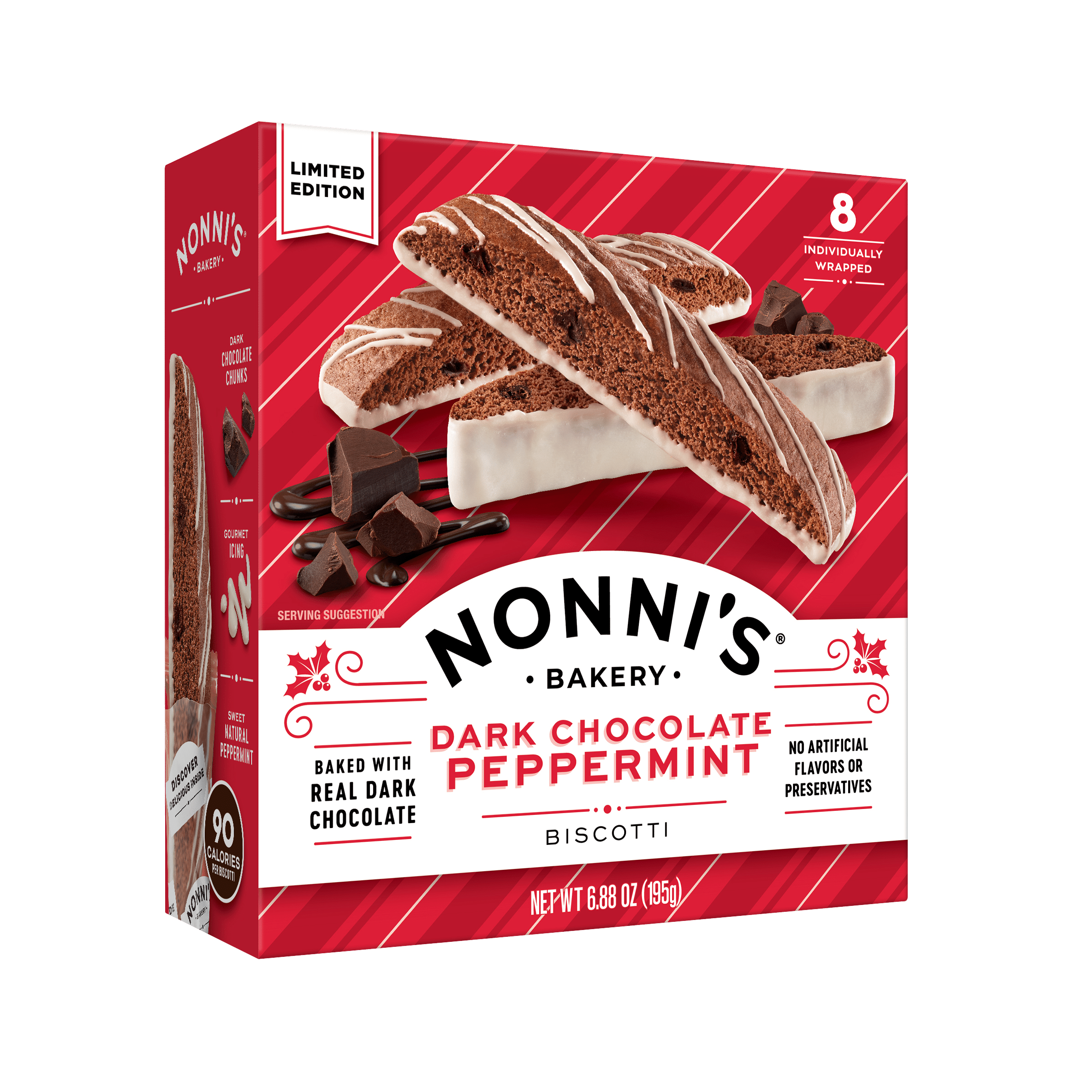 A light and crunchy cocoa biscotti dipped and drizzled in gourmet icing finished with a sprinkle of peppermint candy. Available seasonally September through December. Quantities limited.